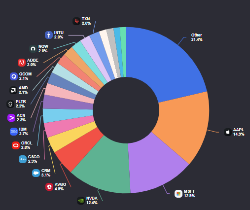 As of the latest data, XLK’s portfolio is heavily concentrated in a few mega-cap technology companies: